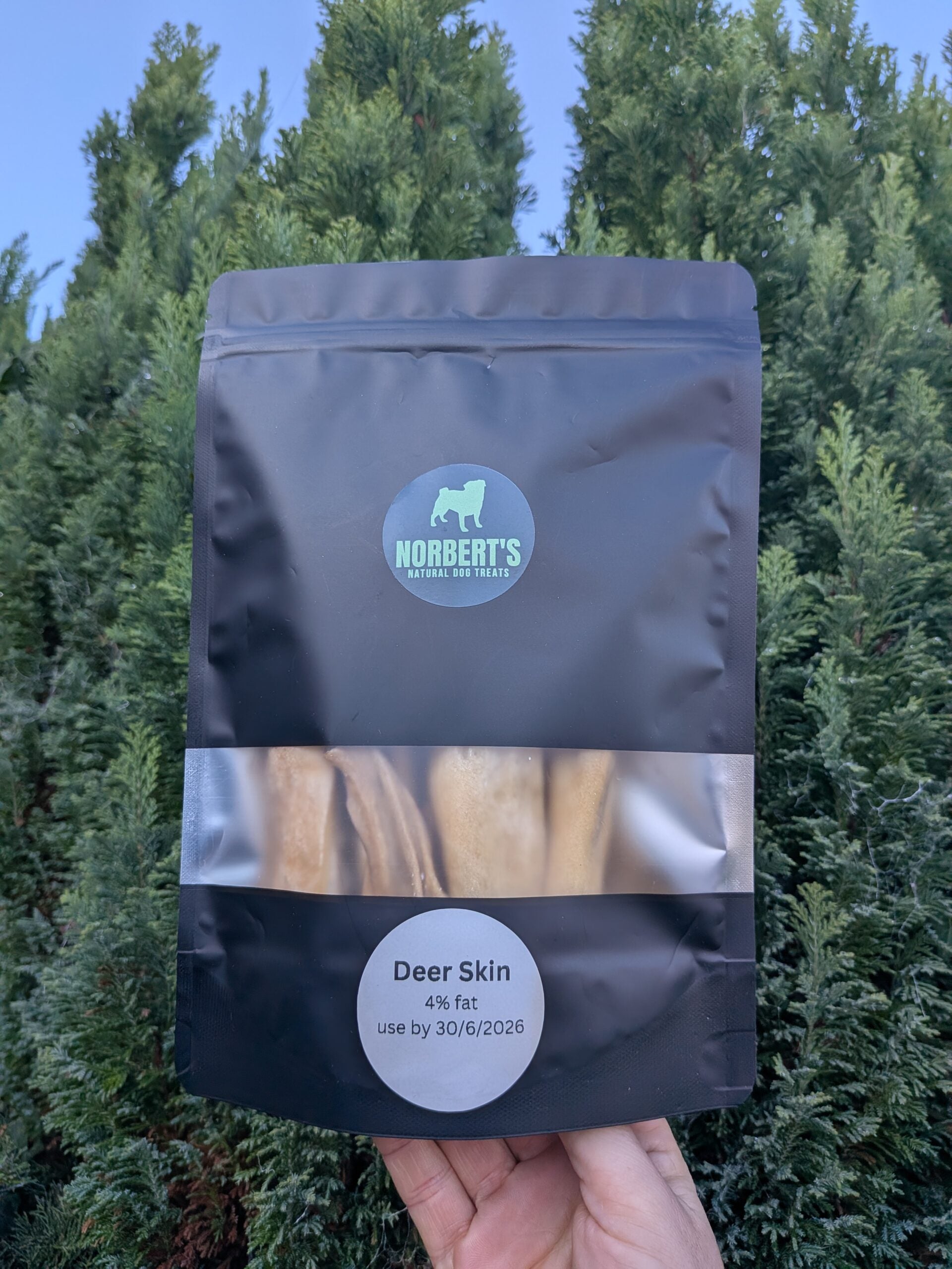 100% venison skinLong lasting, non-greasy A rare meat type for sensitive dogsGreat for puppies Cut into 12cm stripsJust 4% fatEnsure fresh water is available and always supervise...